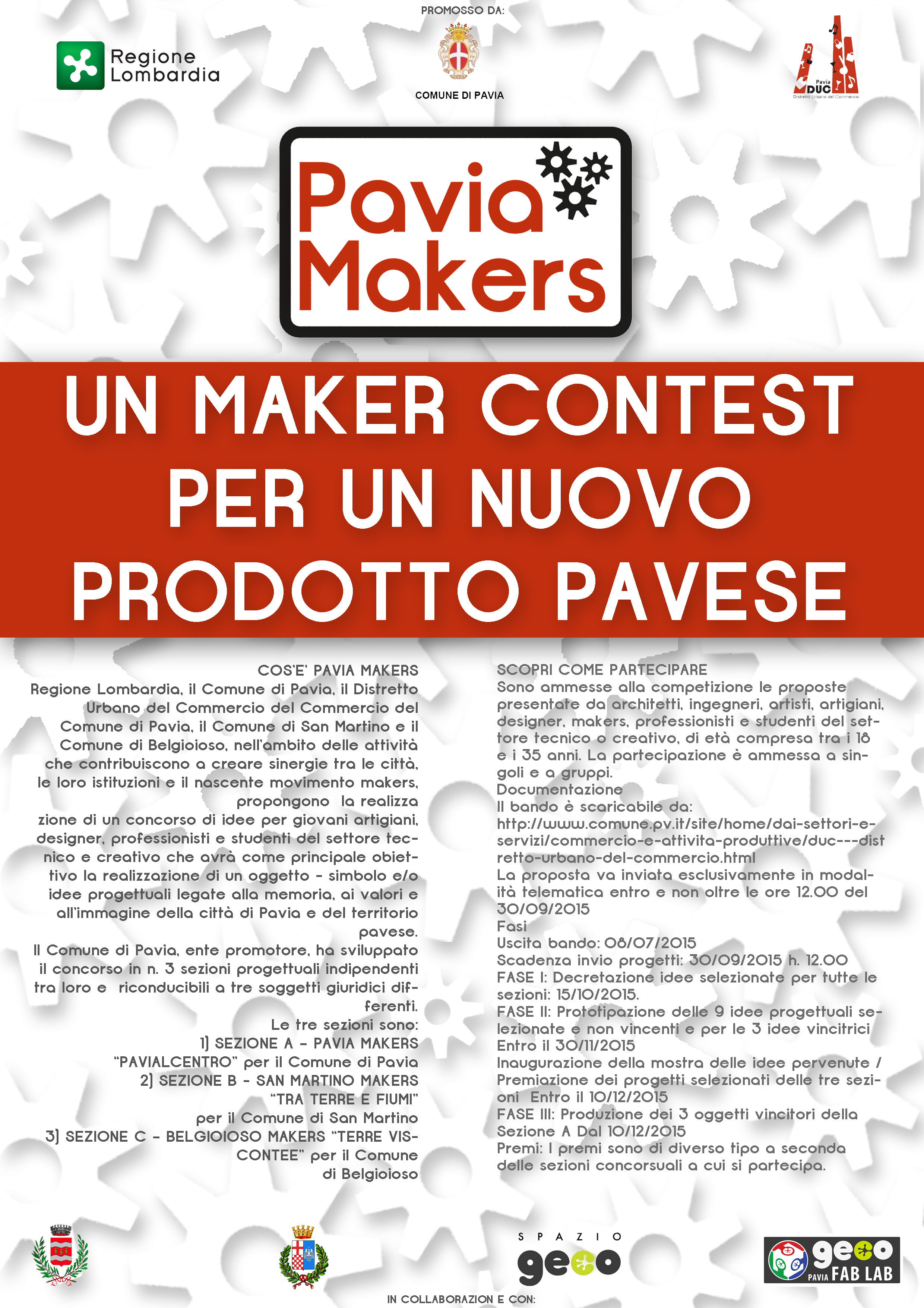 -un gadget rappresentativo della città dall’alto contenuto ingegnoso, da produrre e vendere almeno in città. In questo caso è stato scelto il nome “Pavia Makers”